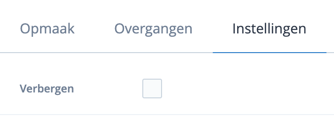 In Webtimized kun je elementen op een pagina verbergen. Elementen zijn bijvoorbeeld: teksten, beelden, formulieren en buttons. Elementen kunnen individueel verborgen worden en per blok tegelijk weer worden getoond.