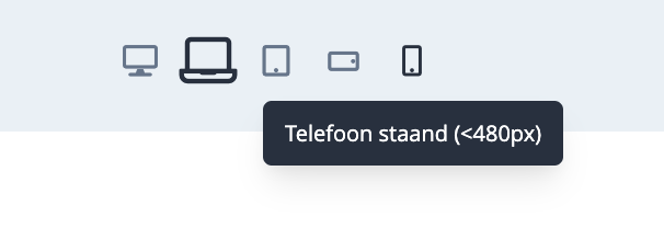 Bovenaan de editor in het midden van het scherm staat de deviceswitch. Geheel rechts in de switchbalk staat de knop om naar de smartphone (telefoon staand) te switchen.