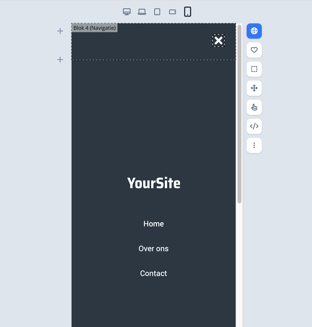 Tijdens het bouwen van de website is het belangrijk om regelmatig naar de mobiele modus te switchen. Op die manier kun je snel zien of de site er voor de mobiel ook perfect uitziet. Zo wordt de mobiele versie van het menu vaak vergeten. In onderstaande stappen wordt getoond hoe je het mobiele menu kunt opmaken.