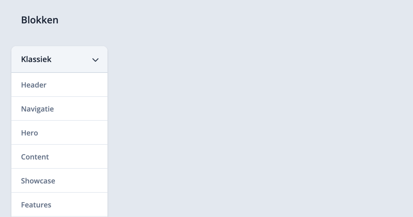 Webtimized bevat een groot collectie met kant-en-klare blokken. Bouwen met blokken is de meest efficiente manier om websites te bouwen. Door gebruik te maken van kant-en-klare blokken kun je snel websites bouwen. Je hebt daarbij de zekerheid dat de verschillende blokken perfect werken op de diverse devices.