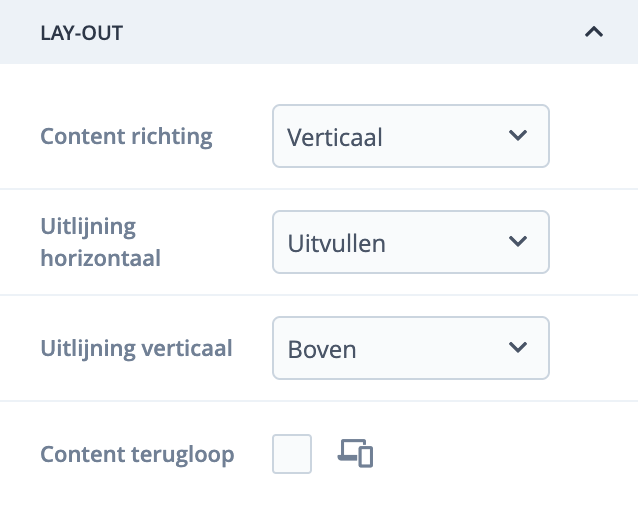 Hiermee kun je instellen hoe elementen zich gedragen als deze niet meer horizontaal naast elkaar passen. Indien deze optie aangevinkt is zullen elementen verder gaan op de volgende regel.