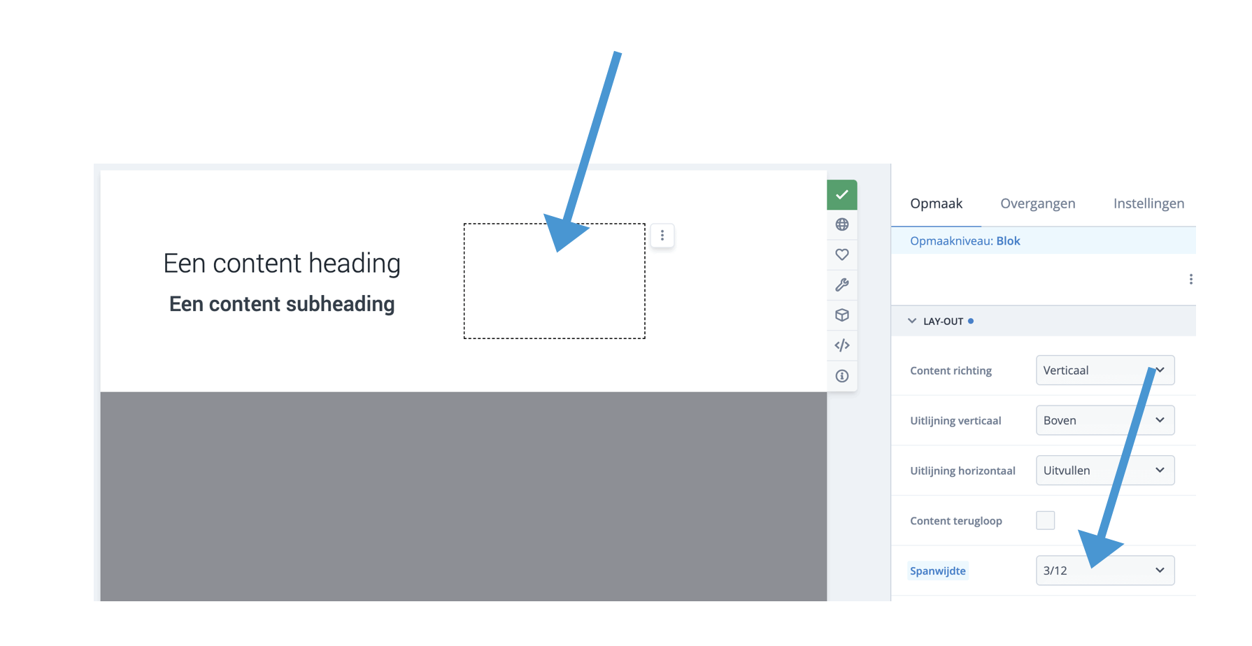 In onderstaand voorbeeld is er één kolom en deze heeft (zie pijl) een spanwijdte van 12. Dit betekent dat de kolom de gehele breedte van het blok beslaat.