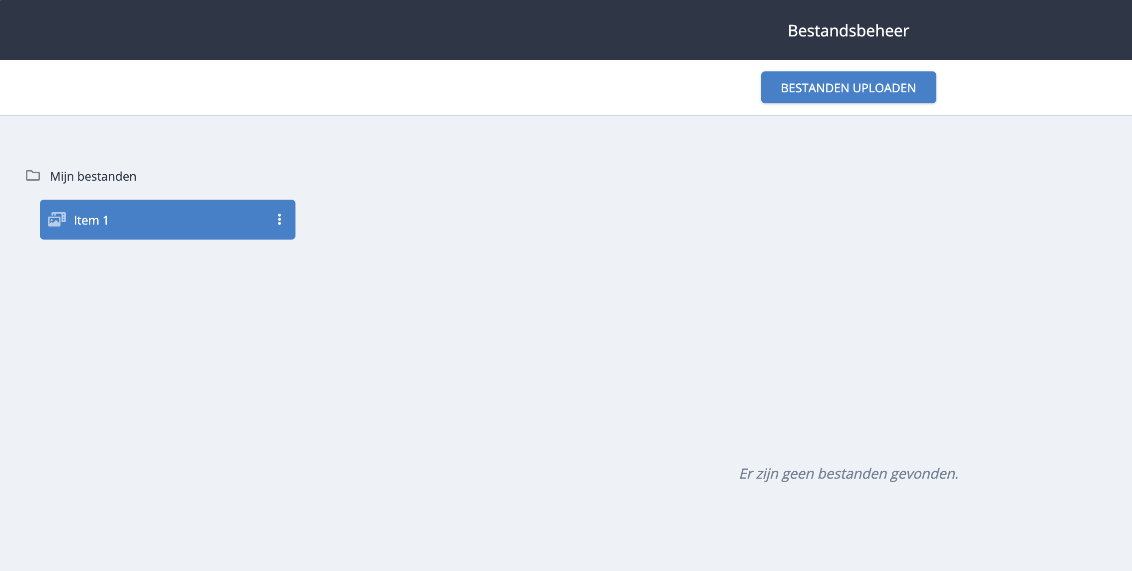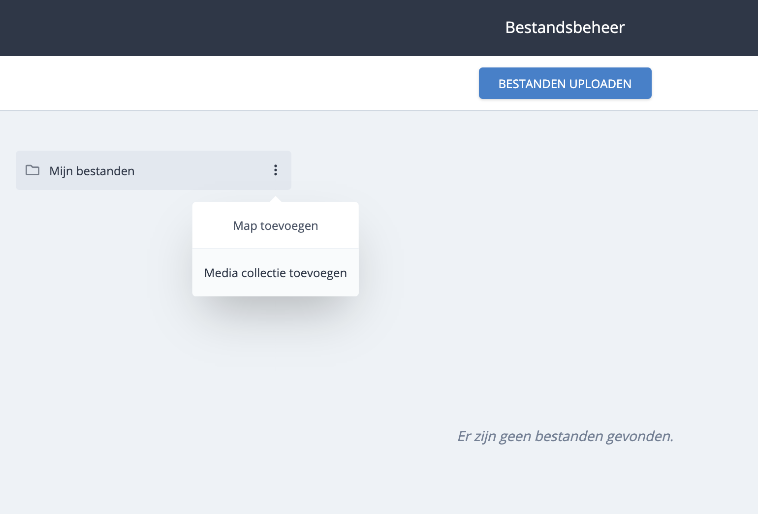 Je komt nu in de bestandsbeheeromgeving. Hier dien je per item een mediacollectiemap aan te maken (zie volgende stap).