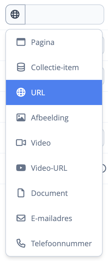 Over het algemeen is het niet verstandig om verkeer van je website weg te leiden naar andere websites. Soms is het echter nodig om links naar een andere website te leggen. Je kan in Webtimized externe links maken door type "URL" (met de wereldbol erbij) te selecteren.