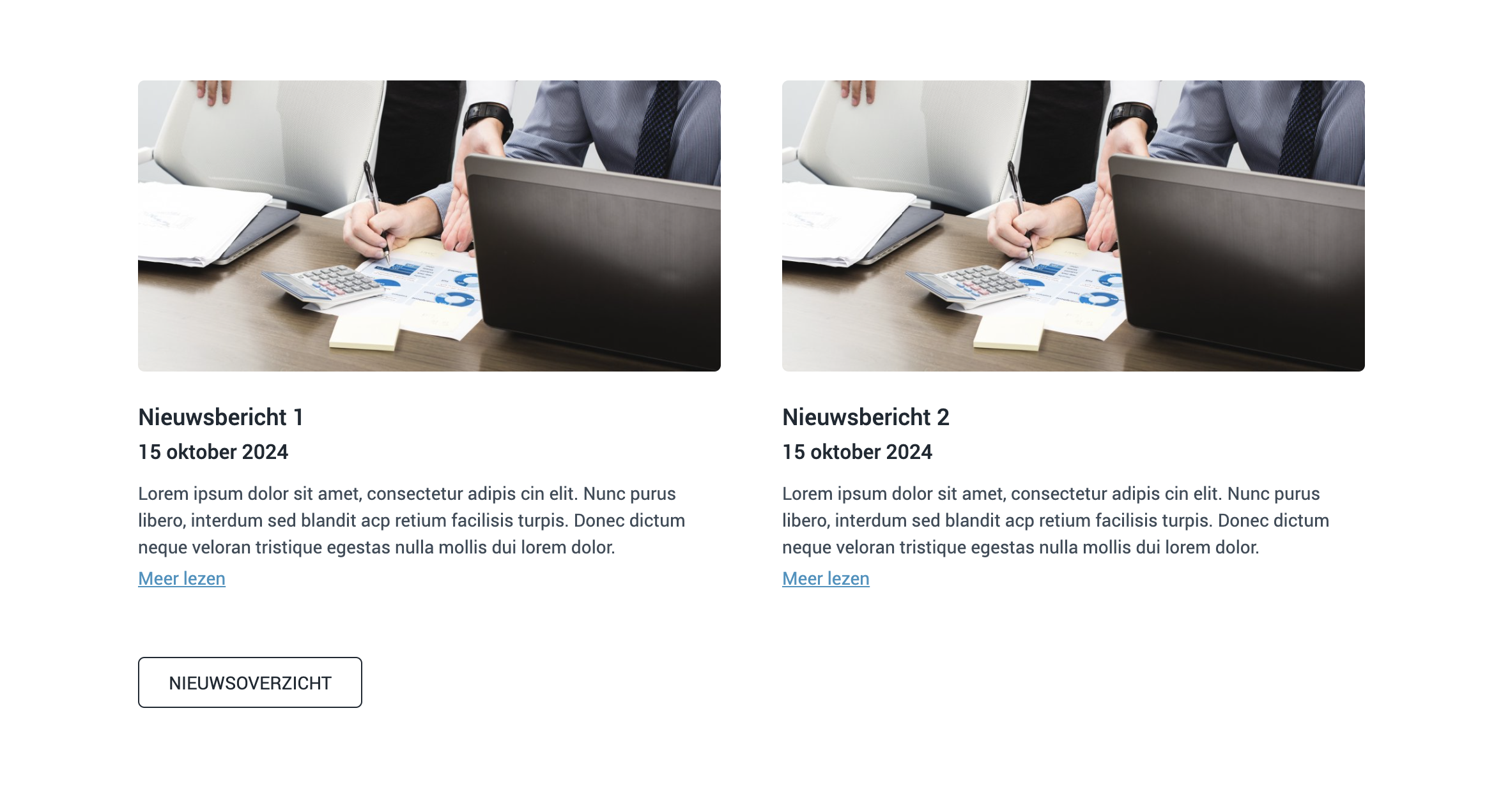 In Webtimized heb je de mogelijkheid om verschillende overzichten te maken. Een voorbeeld van een overzicht is nieuws. In een overzicht worden verschillende items repeterend getoond op een pagina. Ieder item heeft dezelfde opmaak maar wel andere content/inhoud.