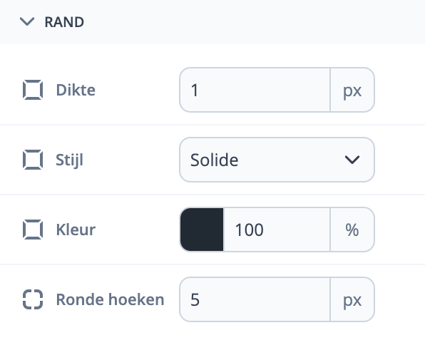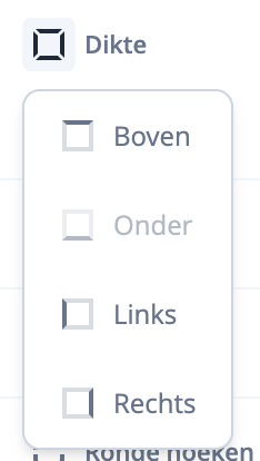 Naast het instellen van de rand rondom, is het ook mogelijk om per zijde te bepalen hoe de rand eruit ziet. Per eigenschap kan een zijde geselecteerd worden.