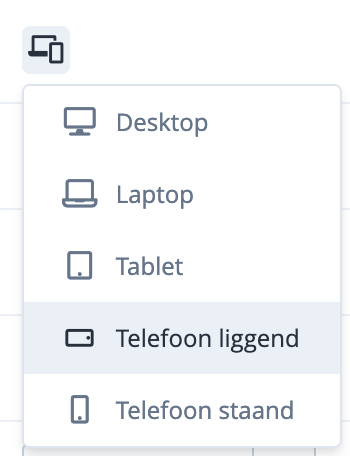 Het resultaat kun je per device bekijken door op de device-switch bovenaan de editor te klikken. Selecteer het device dat je wil bekijken om aanpassingen aan de specifieke deviceblokken te doen.