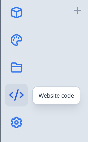 Om de code van een blok aan te passen klik je op de code-knop welke in het blokmenu staat. Zie onderstaande afbeelding. Je kan dan de HTML, CSS (LESS) en Javascript bewerken.