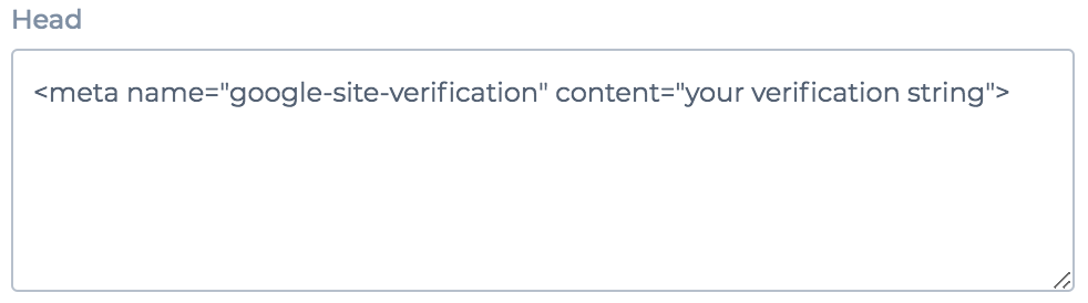 De verkregen meta tag plaats je vervolgens in Webtimized bij je website instellingen in het vakje bij 'head'. Let op dat je de website vervolgens nog wel publiceert.