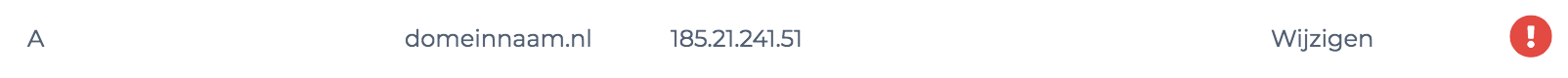 Met een A record kun je een domein laten verwijzen naar een ipv4 ip-adres. Het ip-adres welke je nodig hebt kun je zien in het veld 'vereiste waarde'. Dit kan per website anders zijn.